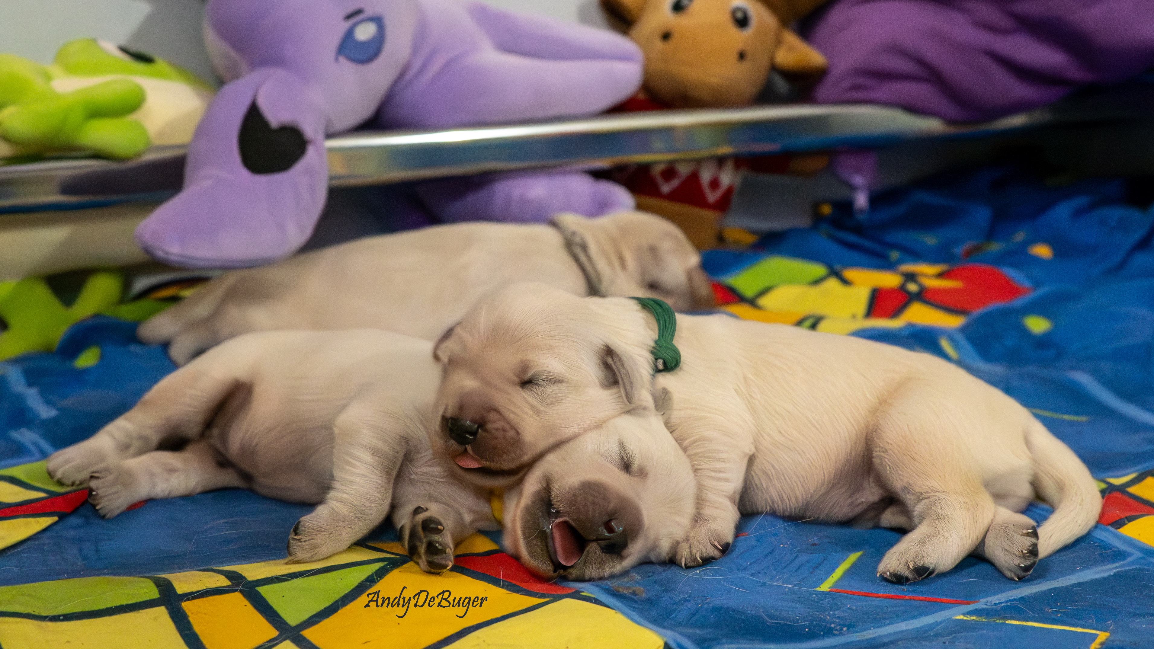 Szczeniaczki, tj. 4 chłopców i 1 dziewczynka urodziły się późnym niedzielnym wieczorem 10 marca 2024 roku. Jest to zarazem pierwszy miot Aryi, jak i nasz debiut w roli psich rodziców. Mama, to nasza perełka o wielkim serduszku, Lemon to młody temperamentny samiec. Oboje są radośni i przyjaźni, kochają ludzi. Ich walory docenili również sędziowie, bo zarówno Arya // PURPLE PAPAYA Bloomingen Gold jak i Lemon // Irving Diamond Retrievers From Korol posiadają tytuły Championa Polski oraz Grand Championa Polski.