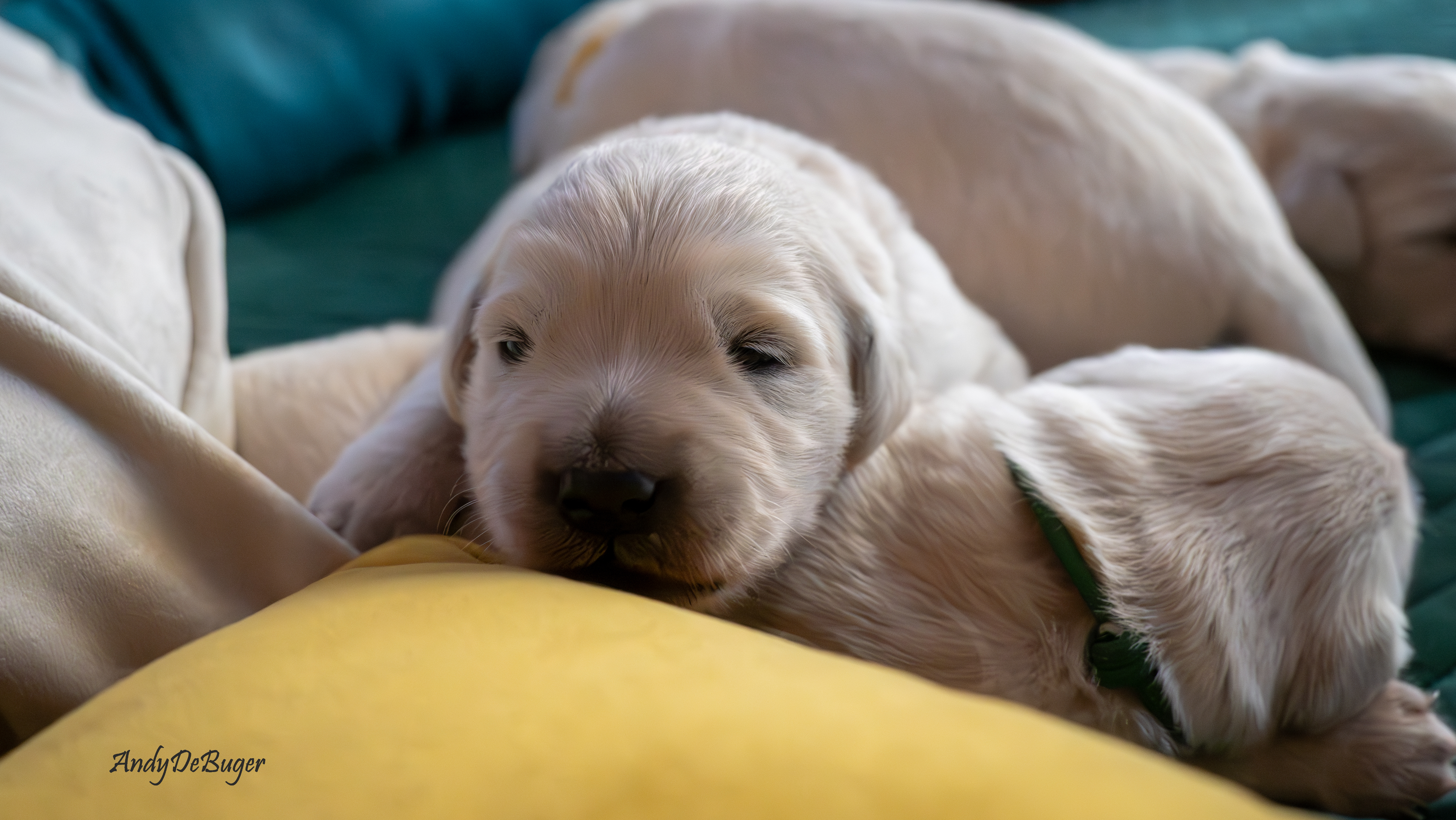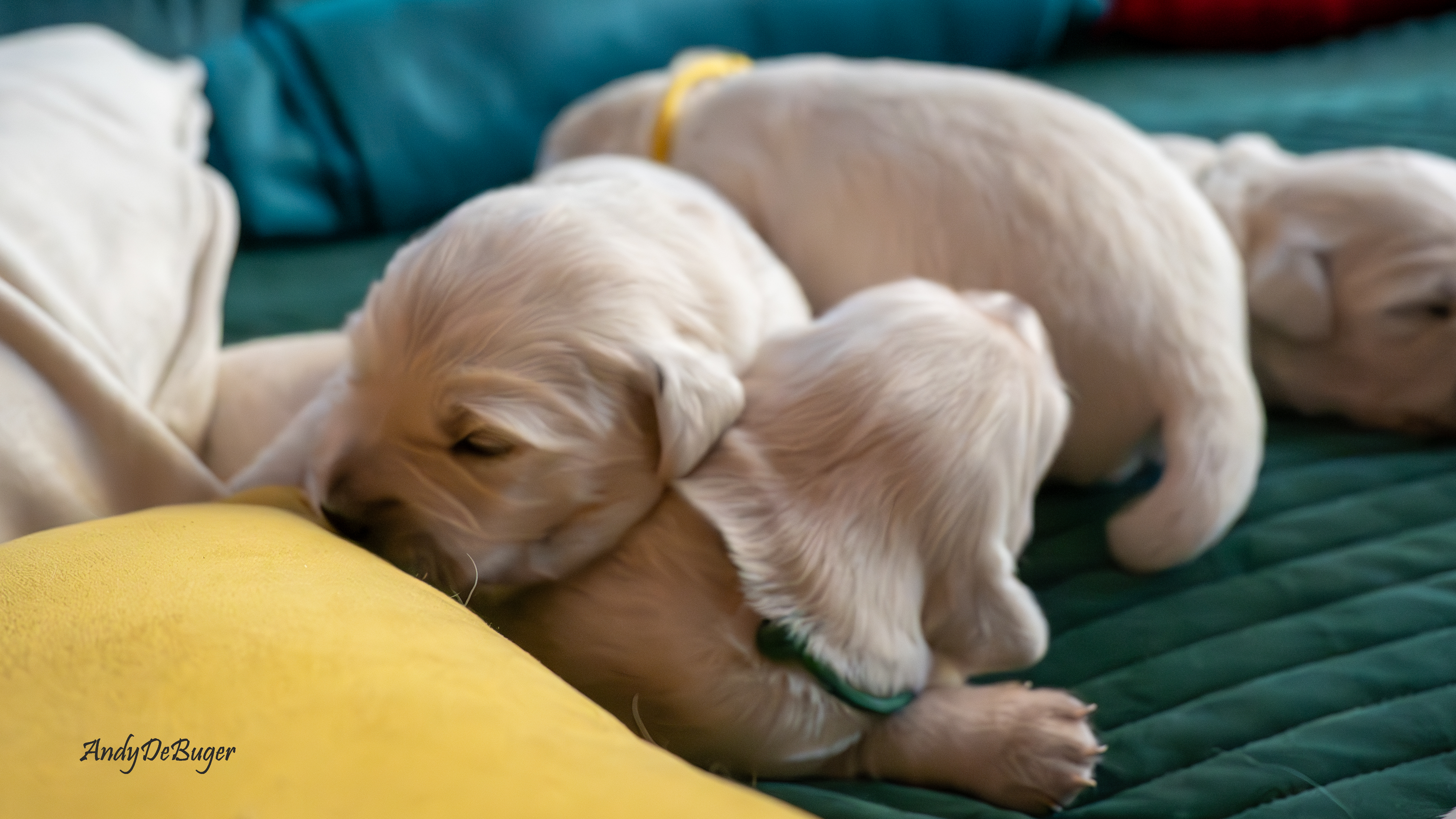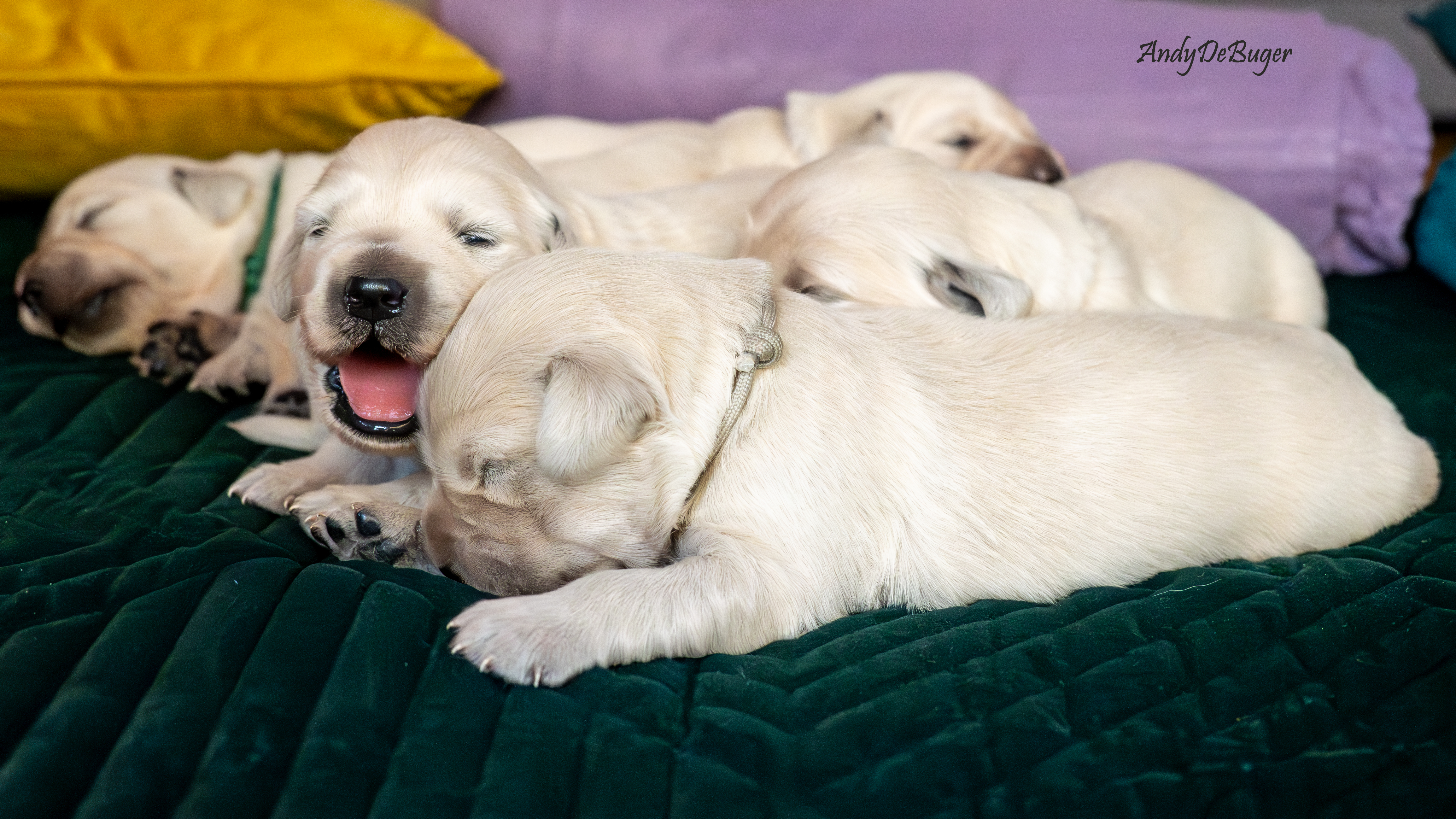 Szczeniaczki, tj. 4 chłopców i 1 dziewczynka urodziły się późnym niedzielnym wieczorem 10 marca 2024 roku. Jest to zarazem pierwszy miot Aryi, jak i nasz debiut w roli psich rodziców. Mama, to nasza perełka o wielkim serduszku, Lemon to młody temperamentny samiec. Oboje są radośni i przyjaźni, kochają ludzi. Ich walory docenili również sędziowie, bo zarówno Arya // PURPLE PAPAYA Bloomingen Gold jak i Lemon // Irving Diamond Retrievers From Korol posiadają tytuły Championa Polski oraz Grand Championa Polski.