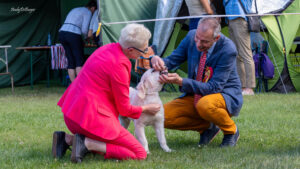 Obie nasze pociechy zaprezentowały się wyśmienicie. Brunonek, w pierwszym dniu uzyskał ocenę wybitnie obiecującą i zdobył tytuł Najlepszego Młodszego Szczenięcia (Best Minor Puppy). Tytuł najlepszego Młodszego Szczenięcia w Rasie przypadł w tym dniu siostrze Brunonka, VIOLETT // ANGEL IN MY HEART Alderaan Angels (FCI), czyli wszystko zostało w rodzinie.
