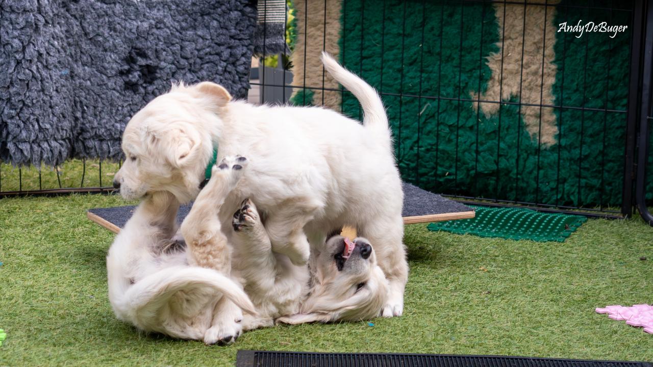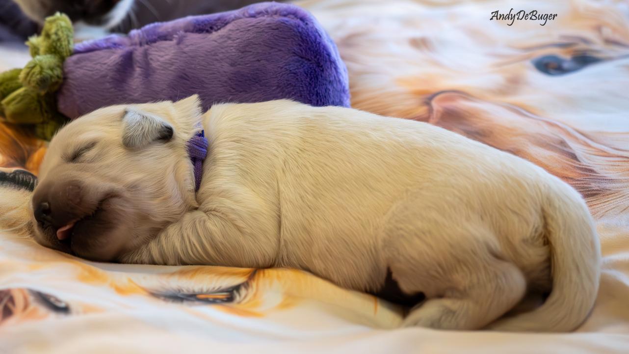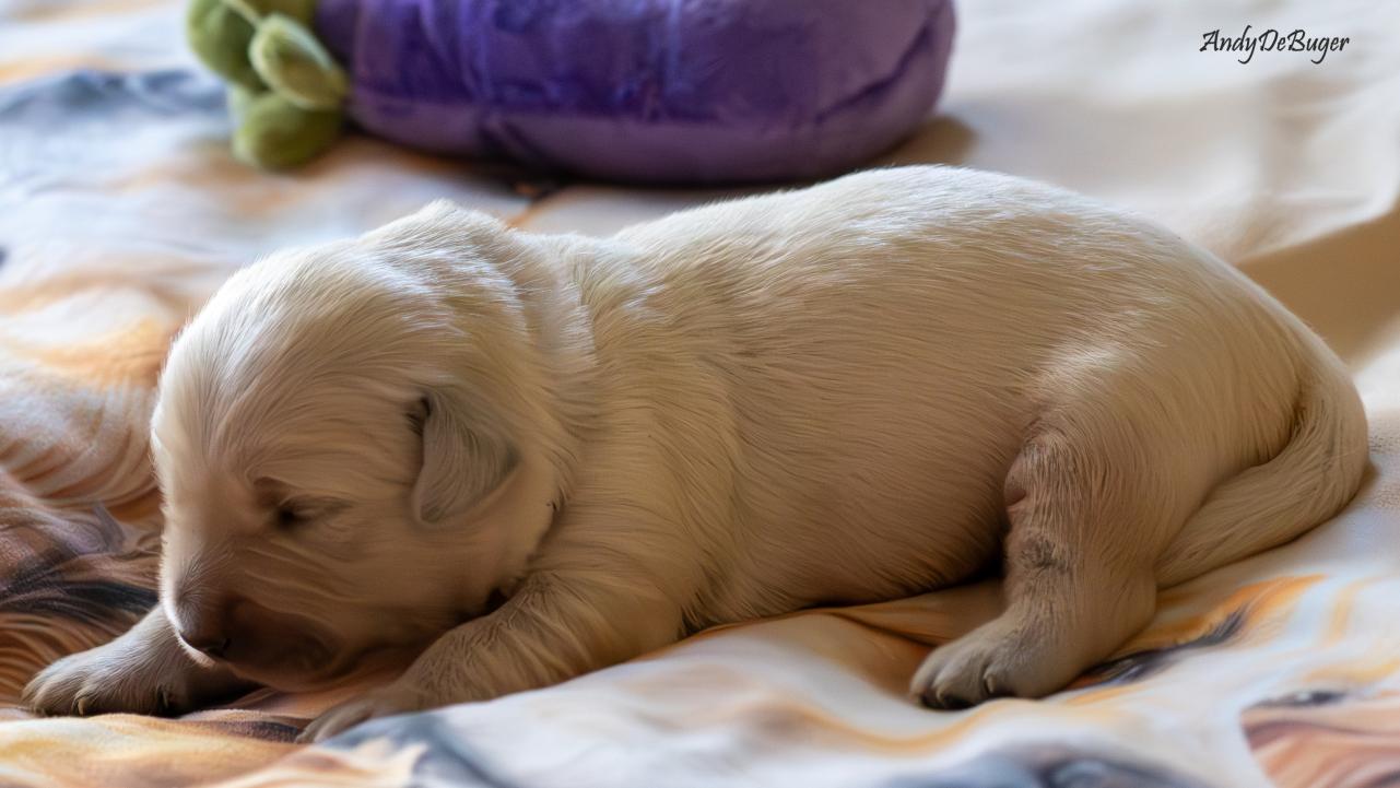Szczeniaczki, tj. 4 chłopców i 1 dziewczynka urodziły się późnym niedzielnym wieczorem 10 marca 2024 roku. Jest to zarazem pierwszy miot Aryi, jak i nasz debiut w roli psich rodziców. Mama, to nasza perełka o wielkim serduszku, Lemon to młody temperamentny samiec. Oboje są radośni i przyjaźni, kochają ludzi. Ich walory docenili również sędziowie, bo zarówno Arya // PURPLE PAPAYA Bloomingen Gold jak i Lemon // Irving Diamond Retrievers From Korol posiadają tytuły Championa Polski oraz Grand Championa Polski.