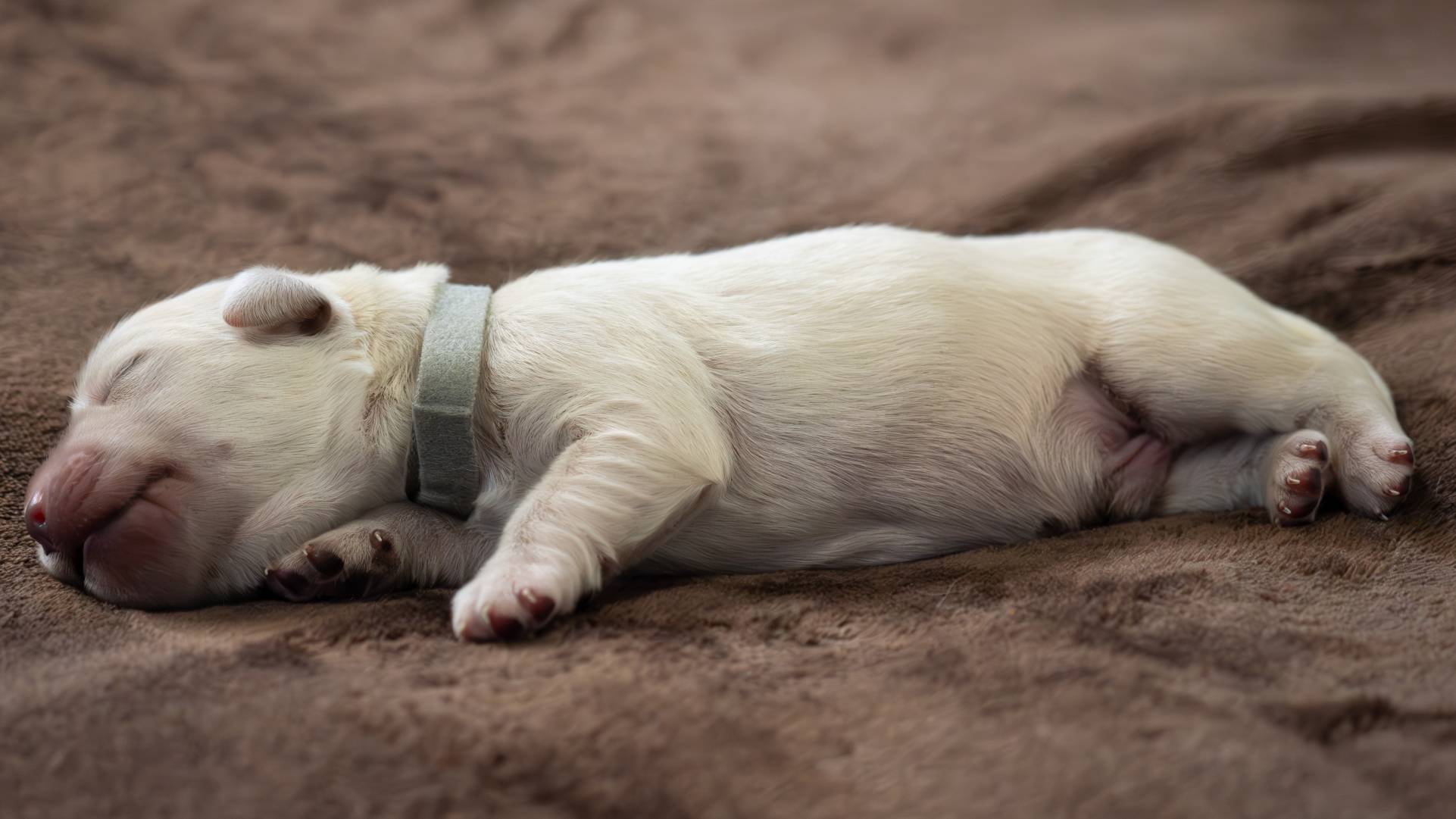Chłopczyk, któremu przypadł kolor obróżki szary, jest ciepłym i kochanym małym facetem. Oczywiście jak wszystkie aniołki z miotu A jest bardzo energetyczny. Bruno, bo tak ma na imię w nowym domu, trafił bardzo blisko nas, do Koszalina, dzięki czemu możemy go często odwiedzać i cieszyć się jego szczęściem.